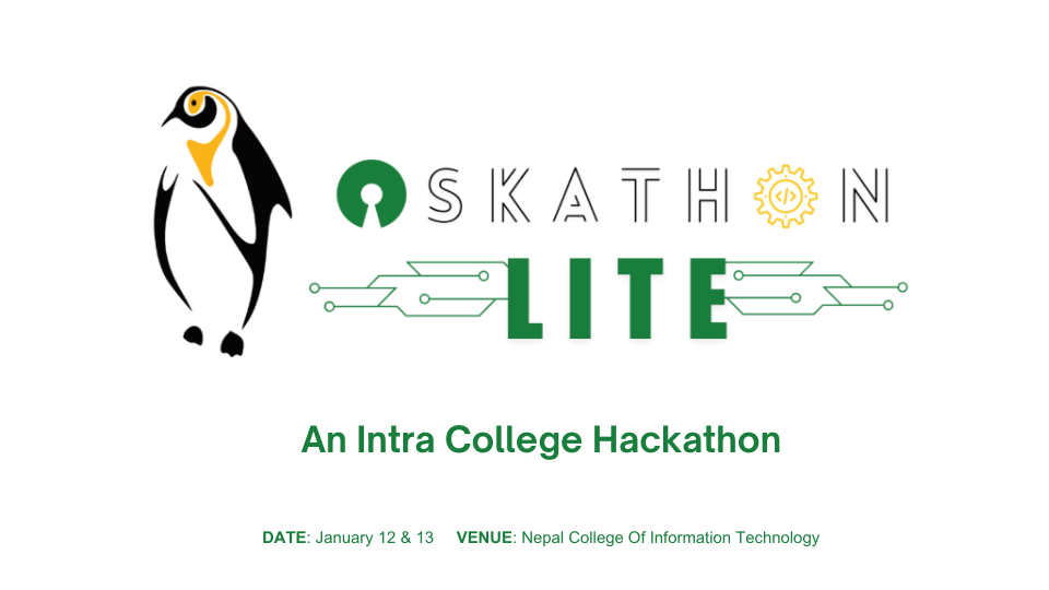 NOSKATHON LITE is an electrifying 28-hour intra-college hackathon, proudly organized by the Nepal Open Source Klub (NOSK) at Nepal College of Information Technology (NCIT). This event challenges students to step out of their comfort zones, think innovatively, and craft real-world solutions leveraging cutting-edge technology.