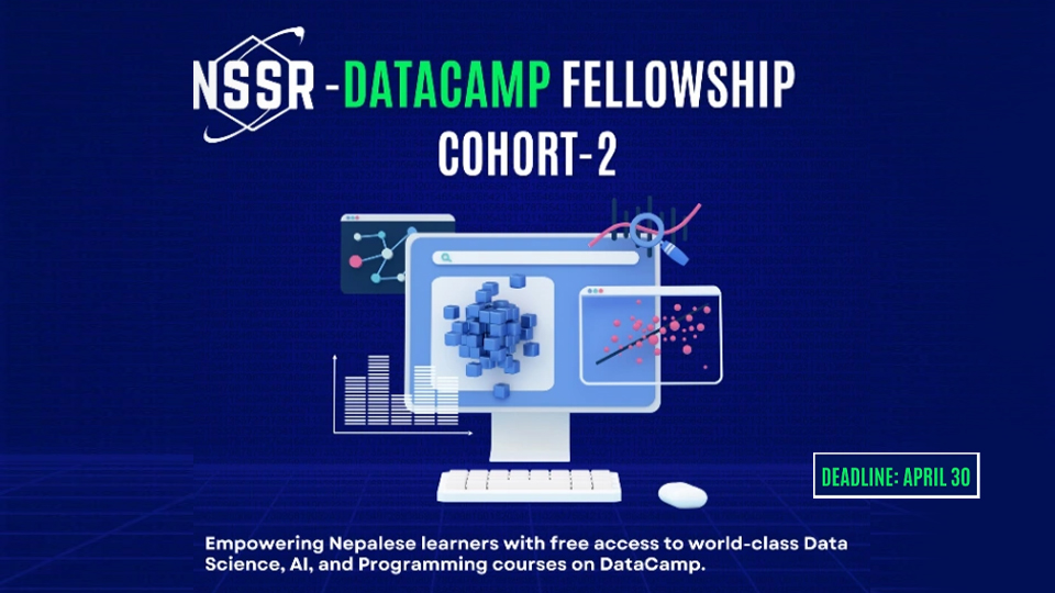 The Nepalese Society of Student Researchers (NSSR) is offering free 6-month DataCamp access to empower Nepali learners in data science, programming, AI, and research skills. The NSSRโDataCamp Fellowship Cohort 2 is now open for applications.